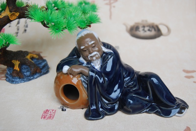 Chinese style drunken man ceramic ornaments Garden home Tea tray Screen Book table Rockery characters Landscape decoration decorations