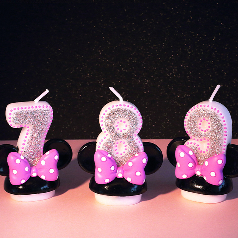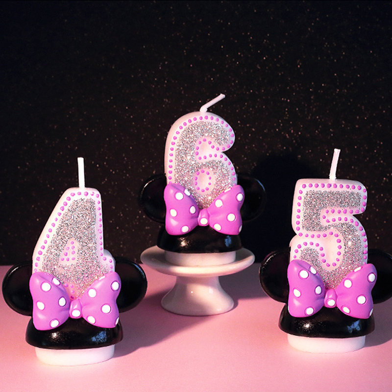 Children's birthday party Minnie Bow Baby Feast Full moon Year old Digital Cake decoration Cute Creative Candles