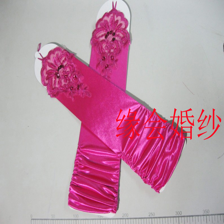 Hook fat-free embroidered small flower satin mid-length beige white red black wrinkled bride wedding dress accessories gloves