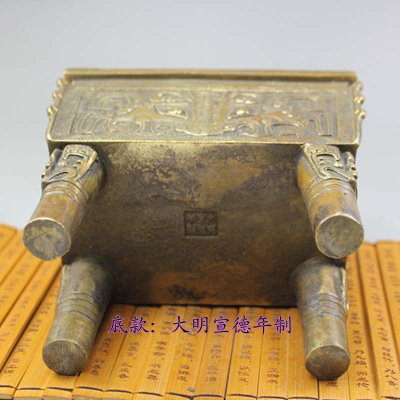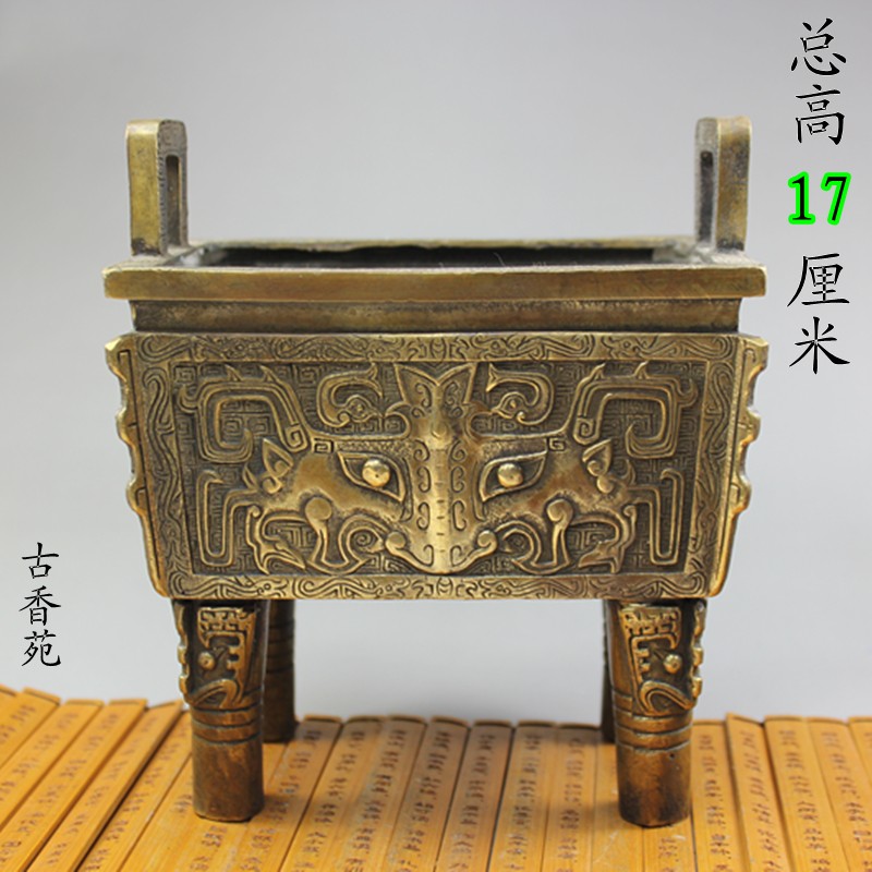 Pure copper bronze tripod bronze incense stove Sheng Shifang bronze tripod imitation ancient bronze tripod beast grain handicraft swing decoration line fragrant ring fragrant tripod full furnace