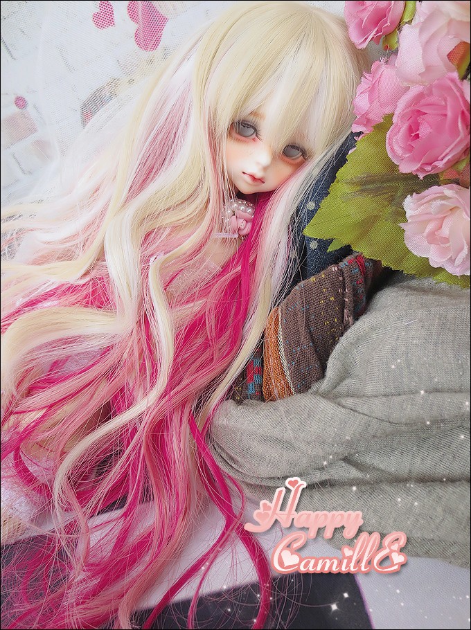 BJD SD dd Doll Wig Hair High Temperature Silk HT-Dream Micro Curly Hair Miscellaneous Pink 1 41 3