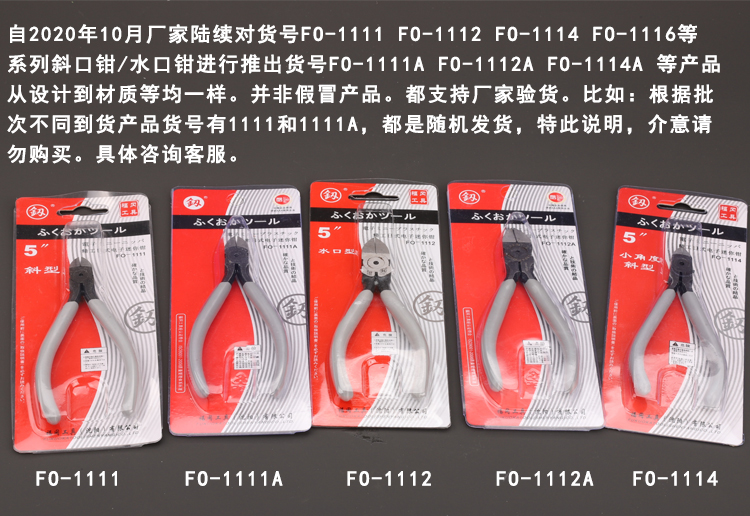 5-inch slanted pliers cargo number 1111 1111A 5 inch small angle inclined mouth pliers cargo number 1114 5 inch water port pliers cargo number 1112 1112A
