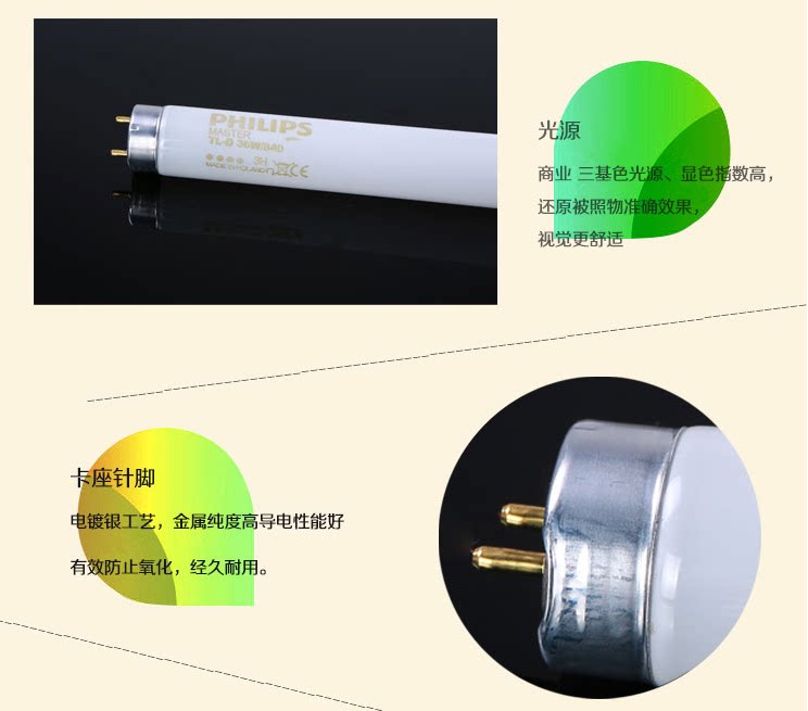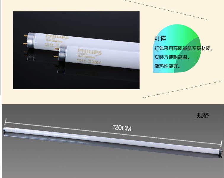 Original 1 2m Philips color matching lamp 36w 840 TL84 standard light source matching color light box light source