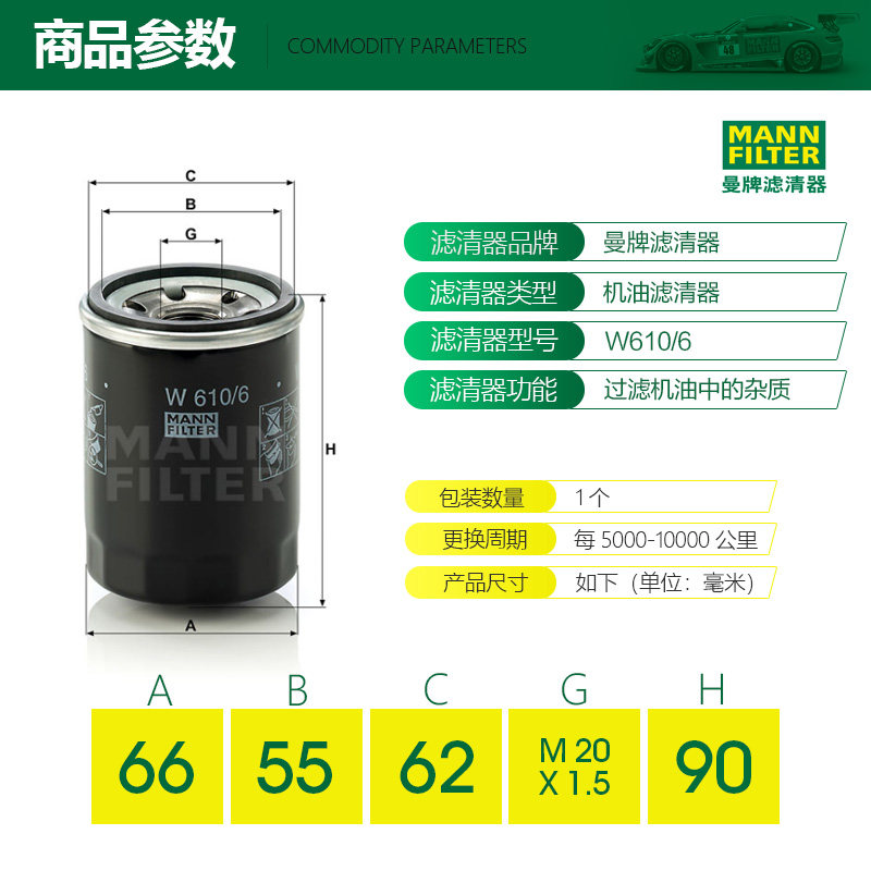 Man brand W610 6 fit City Civic Platinum Binzhi Accord Crown Road XRV Honda crv oil filter