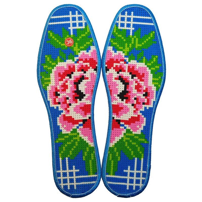 Embroidered insole cross stitch male and female thickened deodorant breathable pinhole printed full handmade Xiangxi semi-finished product with needle thread