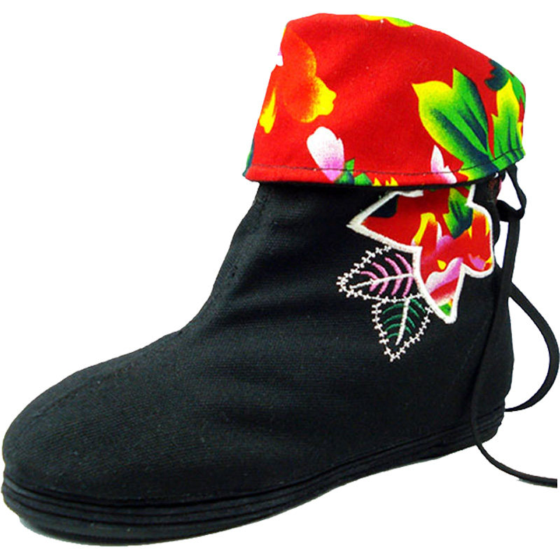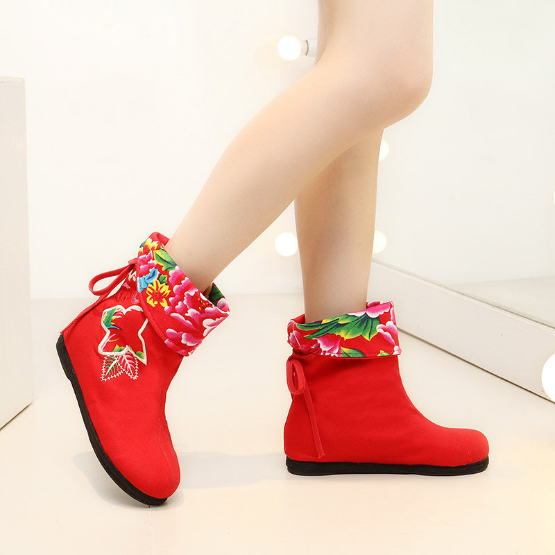 Old Beijing Cloth Shoes Fairy Shoes Embroidered Boots Spring Autumn Single Boots Woman Short Boot FLOOR BOTTOM INNER HEIGHTENING CLOTH BOOTS NATIONAL WIND