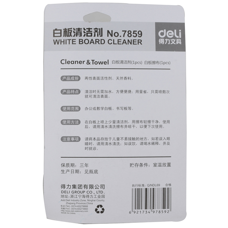 Deli whiteboard cleaner 7859 cleaning liquid cleaning liquid 100ml water-based whiteboard pen ink students children's office whiteboard stubborn handwriting traces erasable easy-to-wipe eraser brush cleaning agent