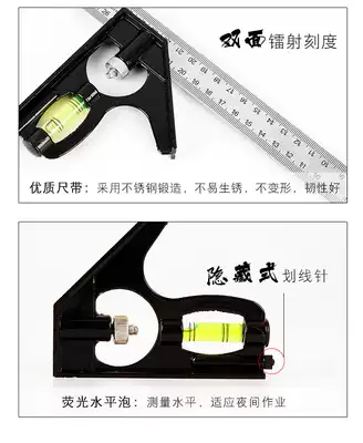 New product adjustable angle ruler triangle ruler woodworking triangle stainless steel angle knife edge woodworking angle ruler combination angle ruler