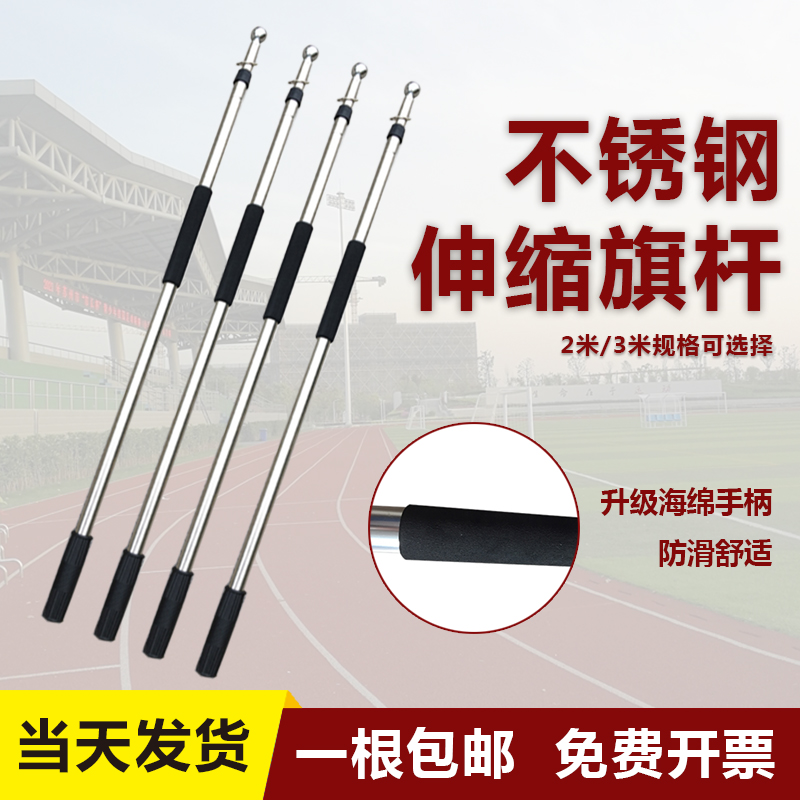 (Multi-specification)non-embroidered steel telescopic guide flagpole thick 2 meters 3 meters flagpole with No 3, No 4, No 5 outing outdoor activities handheld guide pole can also be customized flag