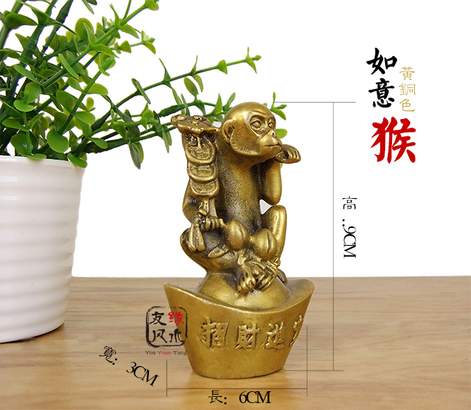 Pure Copper Ruyi Monkey Pendulum with retro recruiter Caifu Fortune Happiness Monkey Duosheng Xiao Zodiac Home Gift Feng Shui Swing