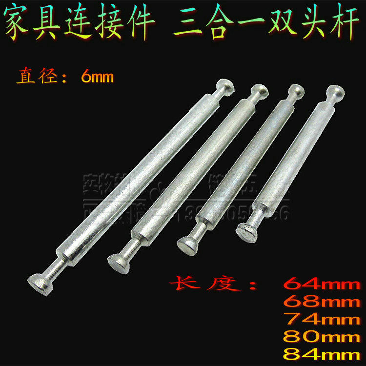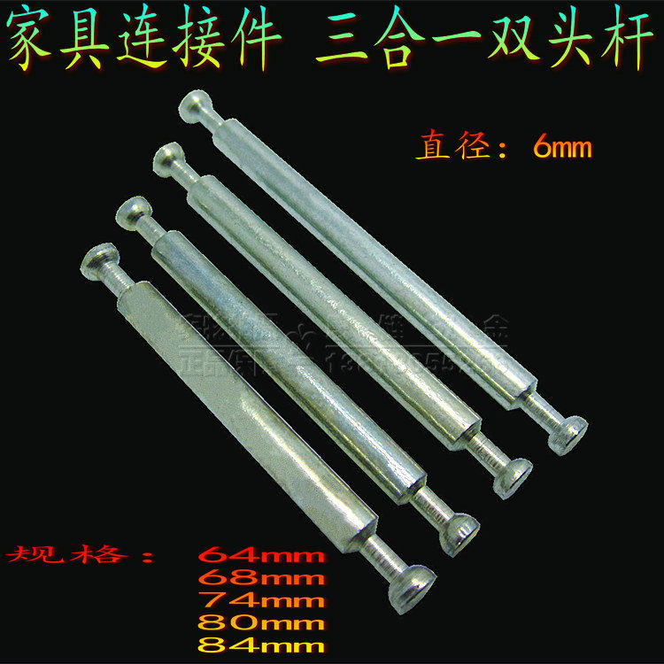 Furniture three-in-one double head connecting piece desk double head connecting lever screw double-head pull rod 74mm