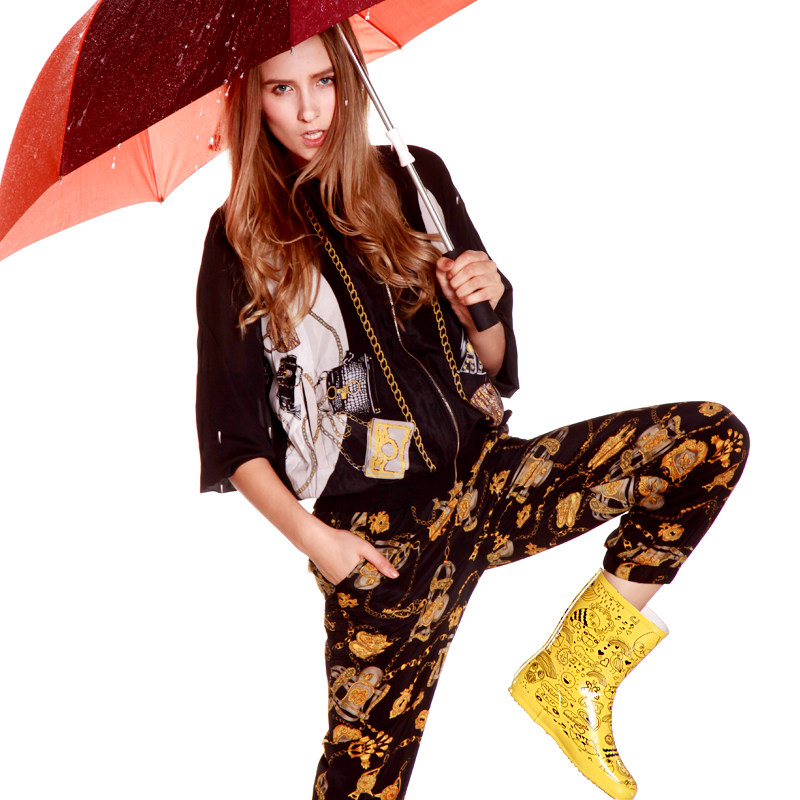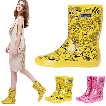 Good rain season, autumn and winter rubber Women's rain shoes, cartoon graffiti rain boots, water shoes, cool street optional warm