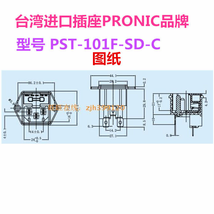 Taiwan Plug PRONIC DOUBLE FUSE SOCKET PST-101F-SD-C MEDICAL DEVICE INSTRUMENTATION SPECIAL