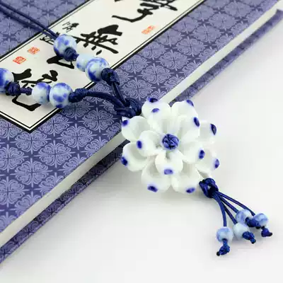 Jingdezhen handmade blue and white porcelain lotus flower long necklace spring sweater chain female national style graduation Tanabata Festival gift