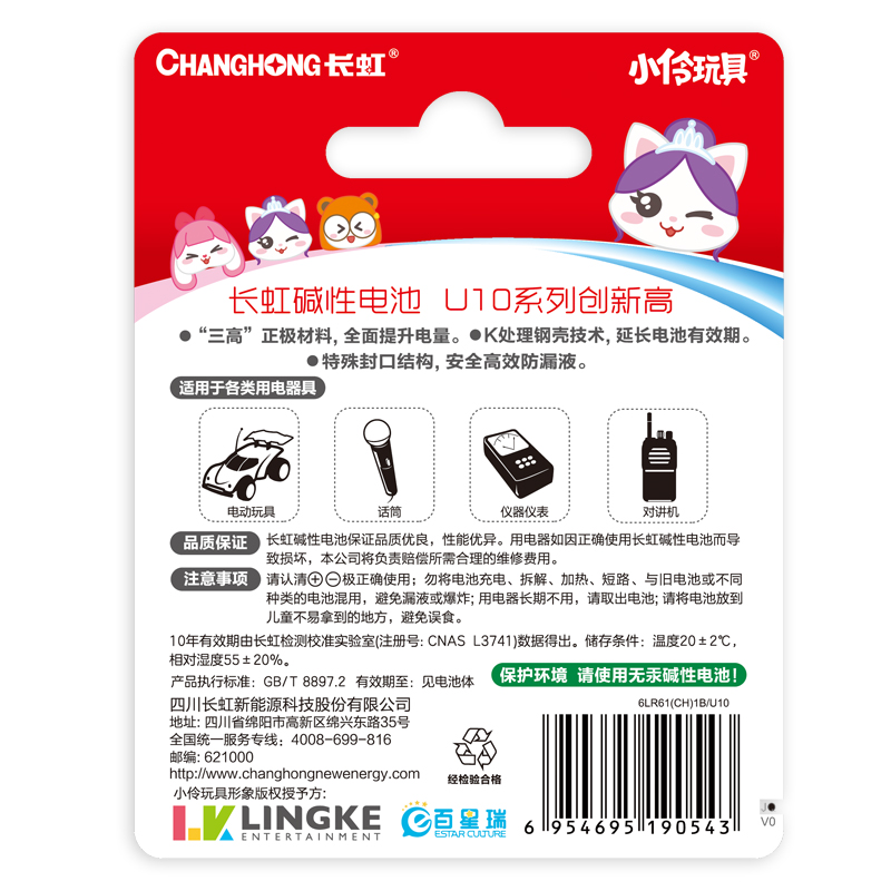 Long-iridescent 9V alkalis battery 6LR61 Wanting with electricity meter Smoke alarm block Lamination Nine Volt Battery 1 Grain Card Clothing