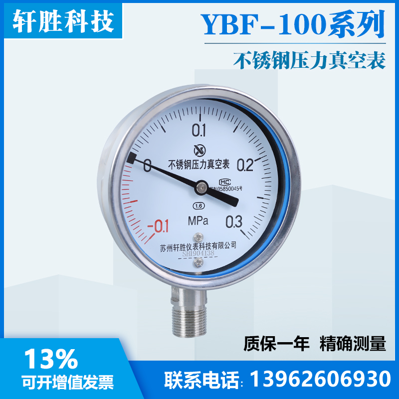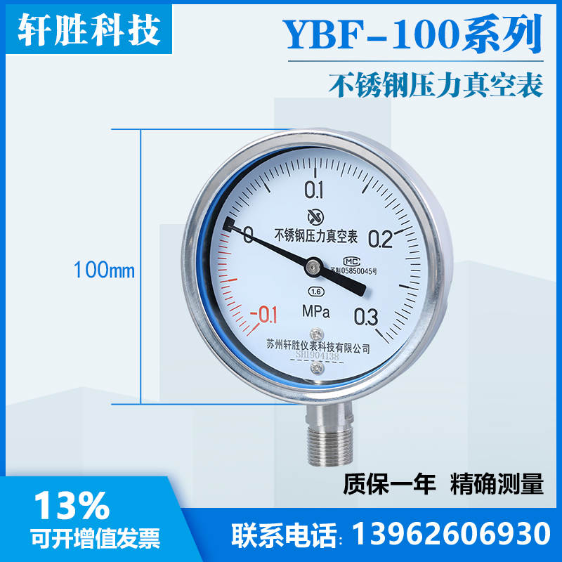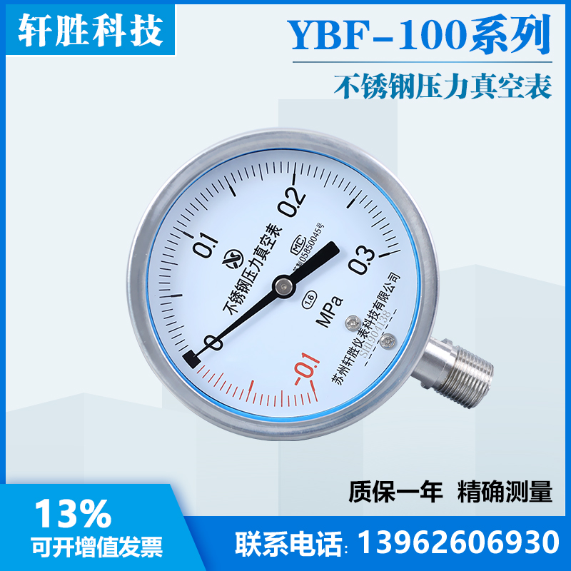 Y100BF -0 1-0 3MPa all stainless steel pressure vacuum gauge stainless steel vacuum pressure gauge