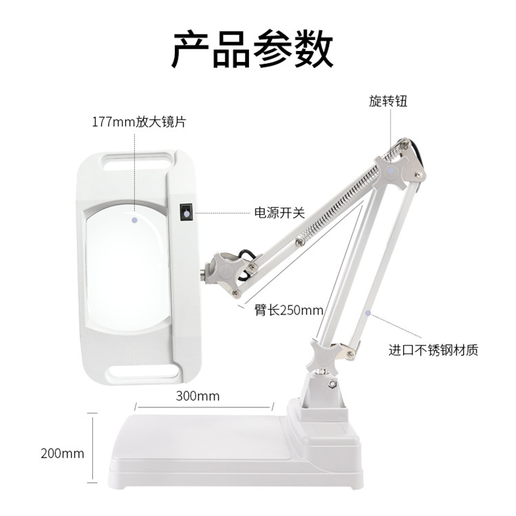 Square desktop magnifier table lamp with lamp magnifier Electronic maintenance inspection Optical white glass lens 5 10 times