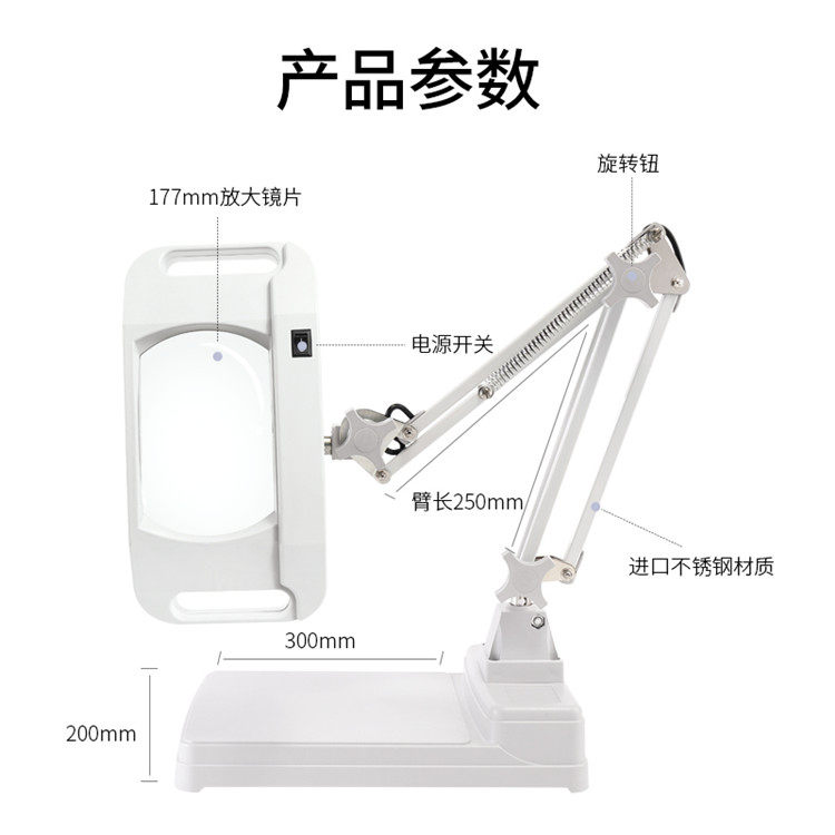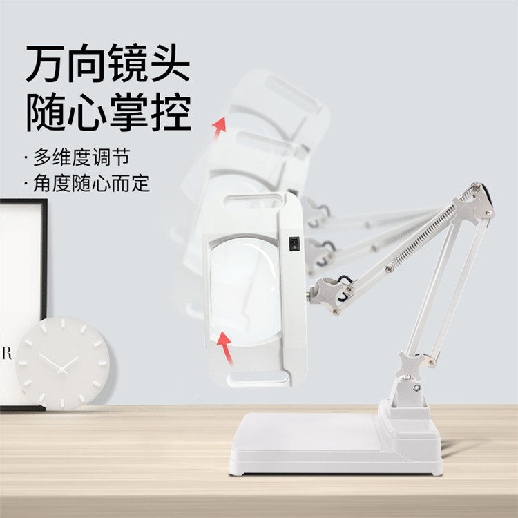 Square desktop magnifier table lamp with lamp magnifier folded magnifying glass common green glass lens 5 10 times