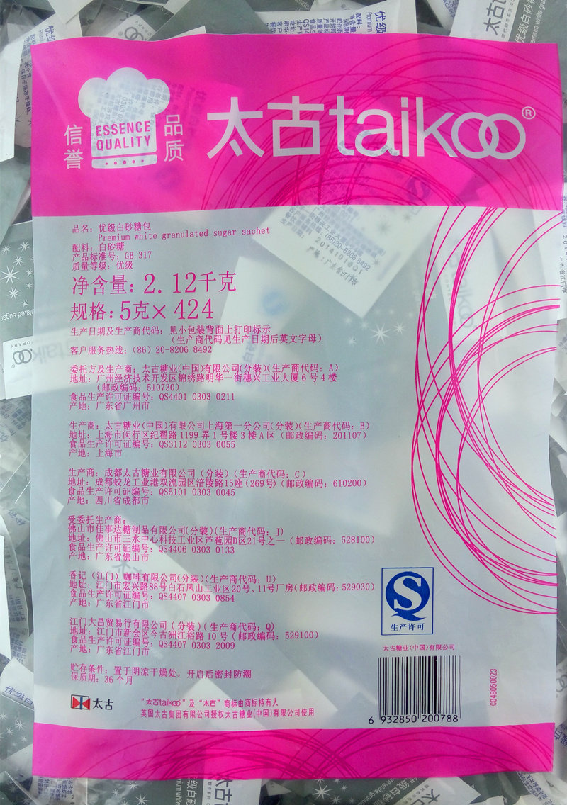10 Taikoo too ancient sugar coated white sugar 5 gr 50 packets coffee-in-sugar independent packaging 250g