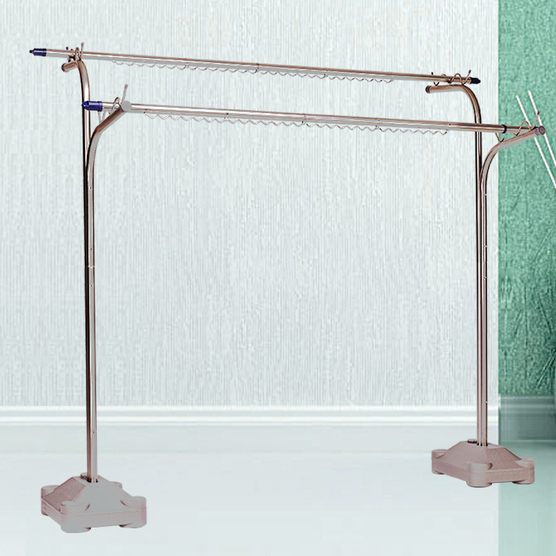 Drying rack floor-to-ceiling folding outdoor stainless steel double pole balcony quilt rack large Simple drying hanger clothes drying Rod