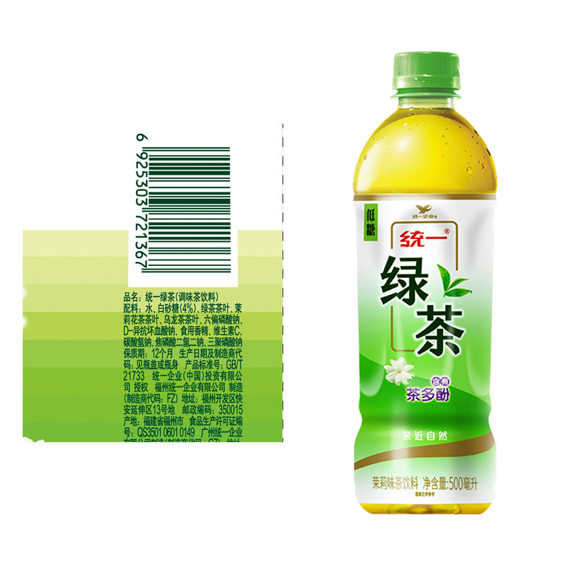 Unified Green Tea 500ml*15 bottles full carton low sugar Jasmine flavor bottled tea drink