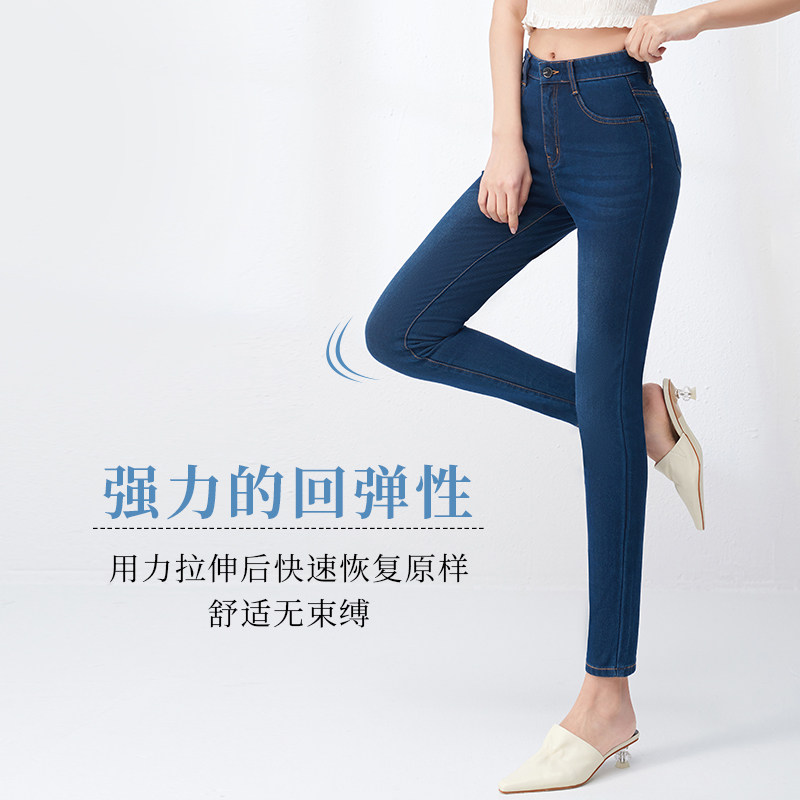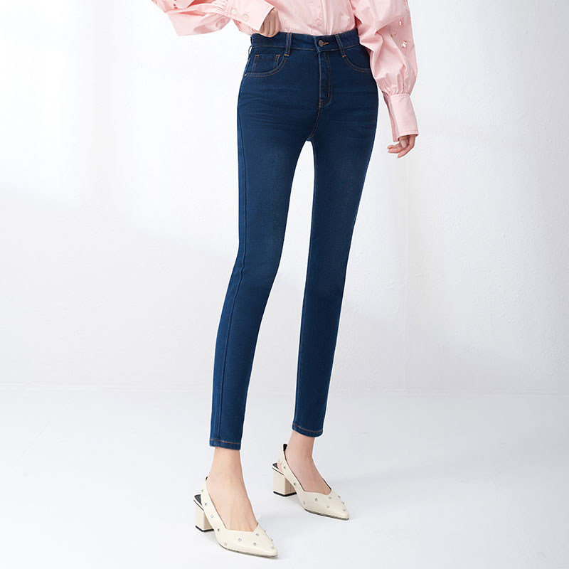 Jetpure spring elastic pencil pants girl dark blue high waist nine small pants jeans in 2023 new models