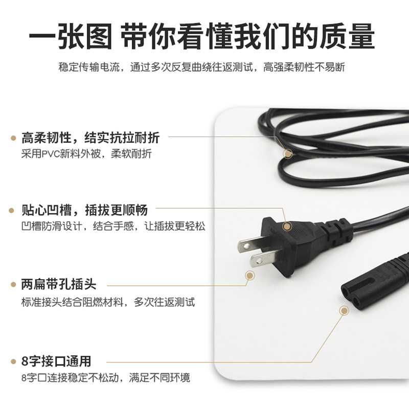 1 5 m American standard two - flat plug 8 tail power cord digital camera table lamp connecting line Longda wire industry
