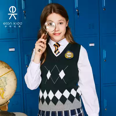 Eaton Gide school uniform student V-neck vest diamond grid men's and women's middle and large children's knitted cotton vest 10B006