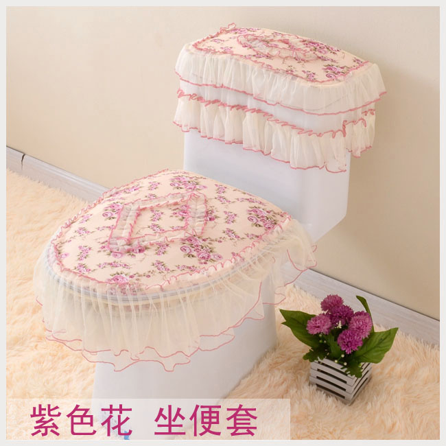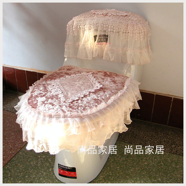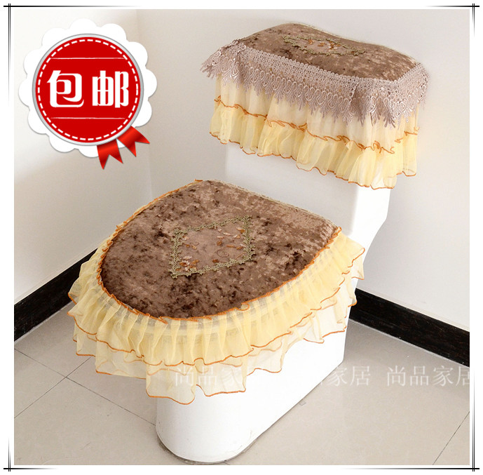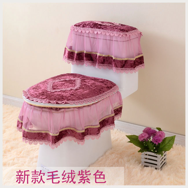 Plush bracelet type cloth art lace sleeve horse toilet cover cushion toilet three sets toilet cover set trap