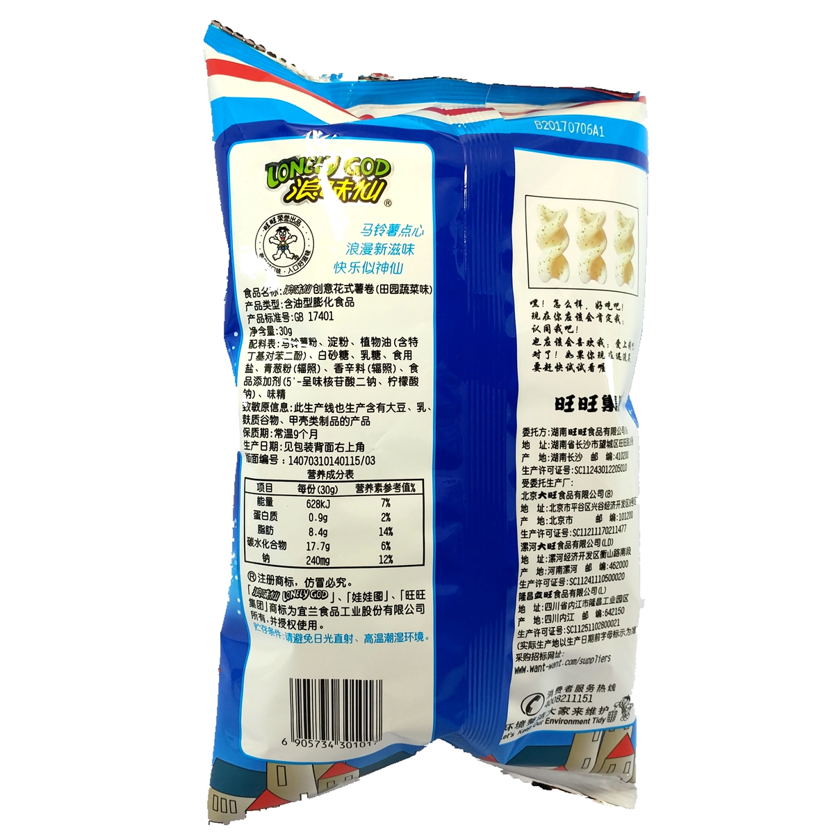 Full amount 80 back nostalgic zero food Wangwani Smell Vegetables Taste 30 gr Casual Puffed Food
