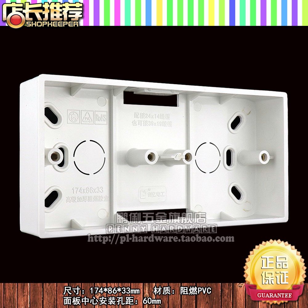 High quality two-bit 86 drying switch socket PVC flame retardant plastic wiring bottom box 174mm*86mm*33mm