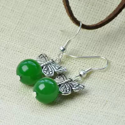 Retro original ethnic jewelry women's style Malay Jade Miao silver earrings handmade jewelry