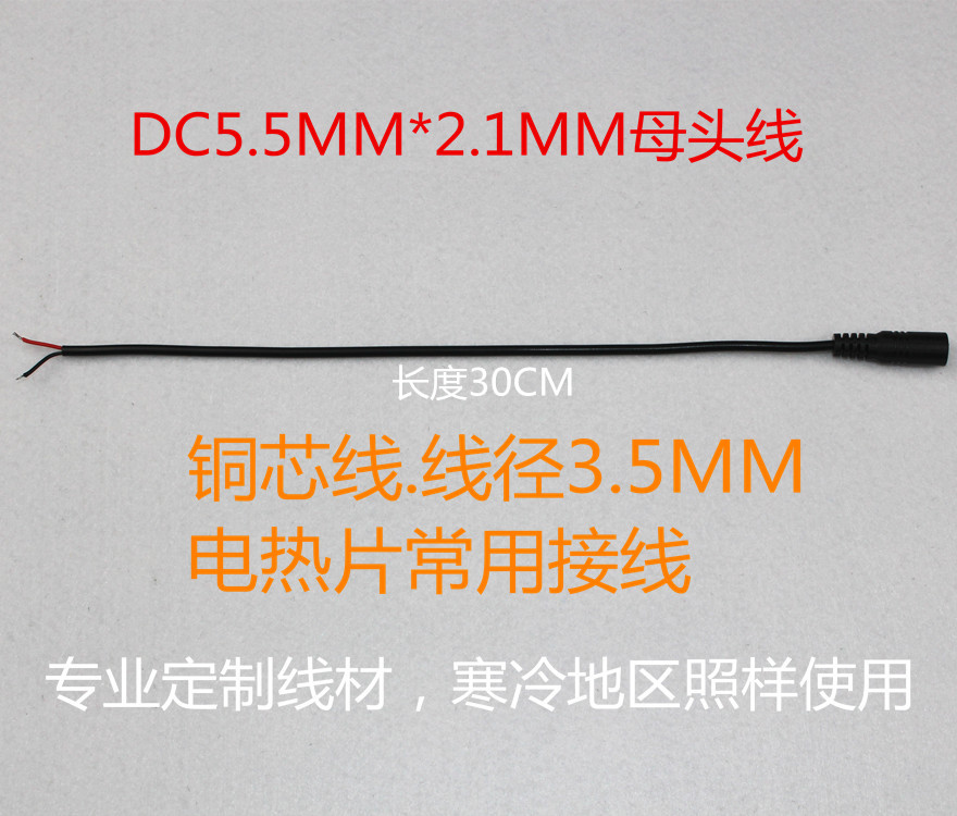 DC5 5X2 1mm female head line length 30CM round wire copper core coarse quality good 12V heating sheet common wire
