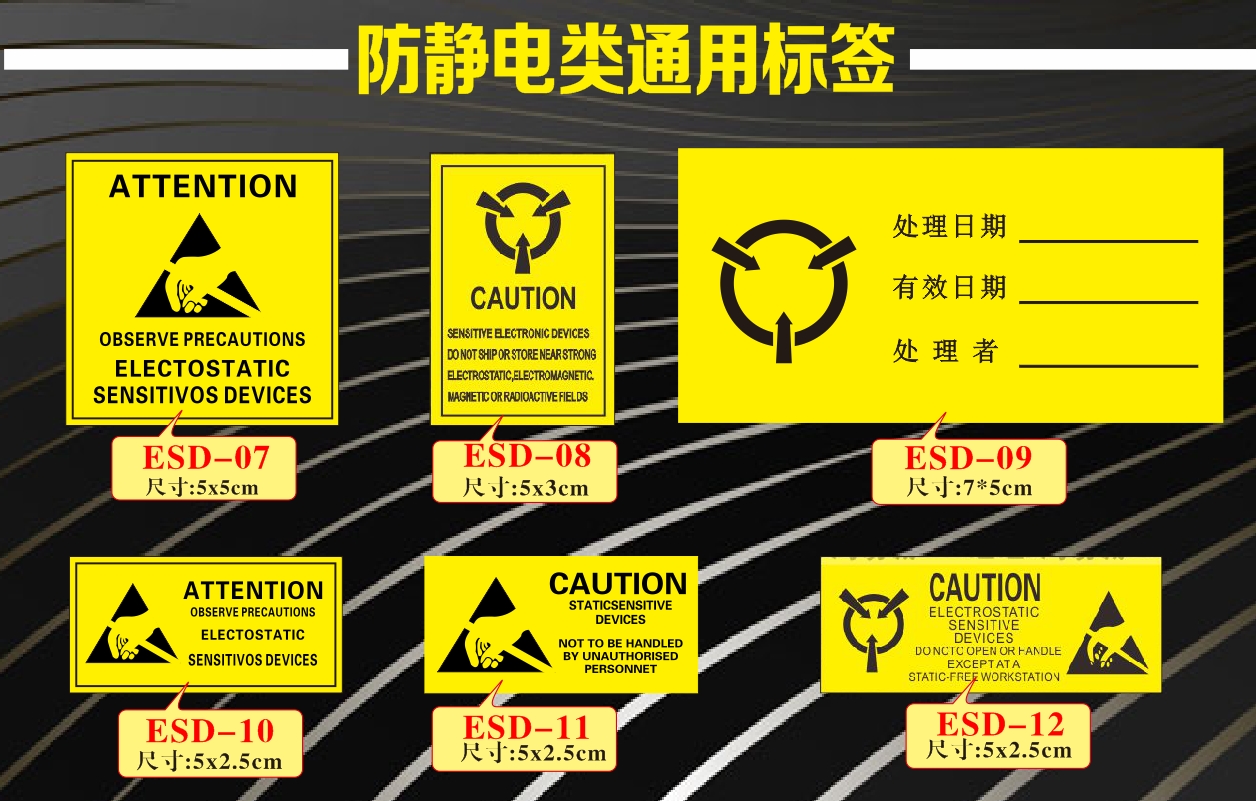 Waterproof self-adhesive anti-static warning signs in English and Chinese anti-static warning signs Electrostatic protection safety signs stickers 100 stickers