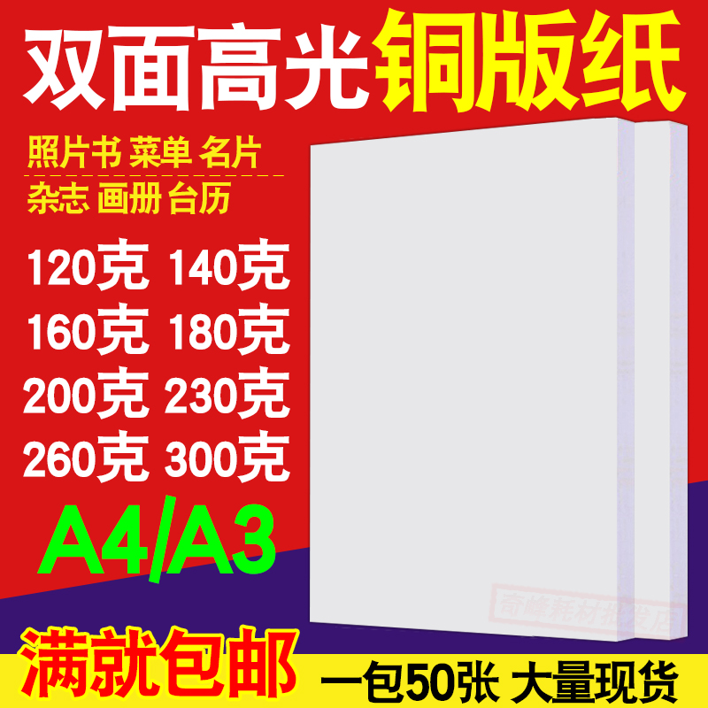Coated paper A4 double-sided high-gloss photo paper A3 color inkjet printing 120g200g300g photo paper Copper paper