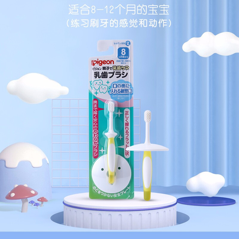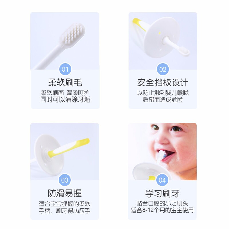 Beiqin Japan imported infant training toothbrush safety baffle 8-12 months yellow 10518 11535