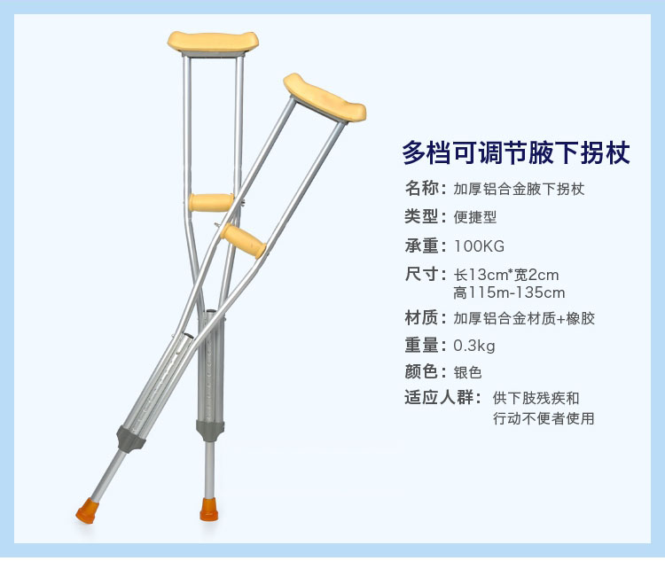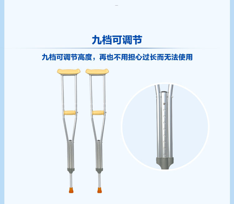 Large China Society Thickened Aluminum Alloy Walking Stick Flex 9 Gear Adjustment Lifting and lifting mental and physical barriers Persons Axillary Non-slip Double Walking Aids