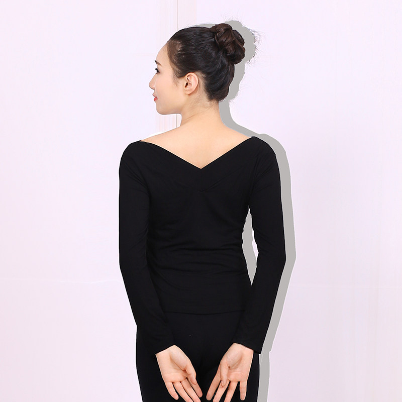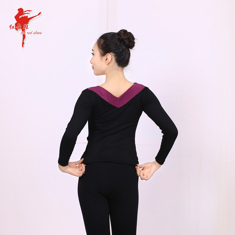Red Dance Shoes Dance Rehearsals Women's Square Dance Long Sleeves Front And Back V Collar Latin Ballet Body Blouse Dancing Suit