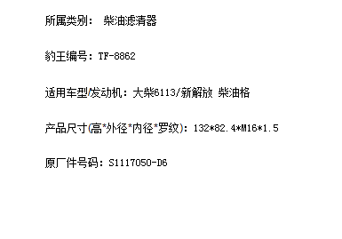 Leopard king TF-8862 diesel filter S117050-D6 suitable for Dachai 6113 new liberation diesel grid