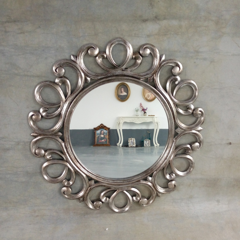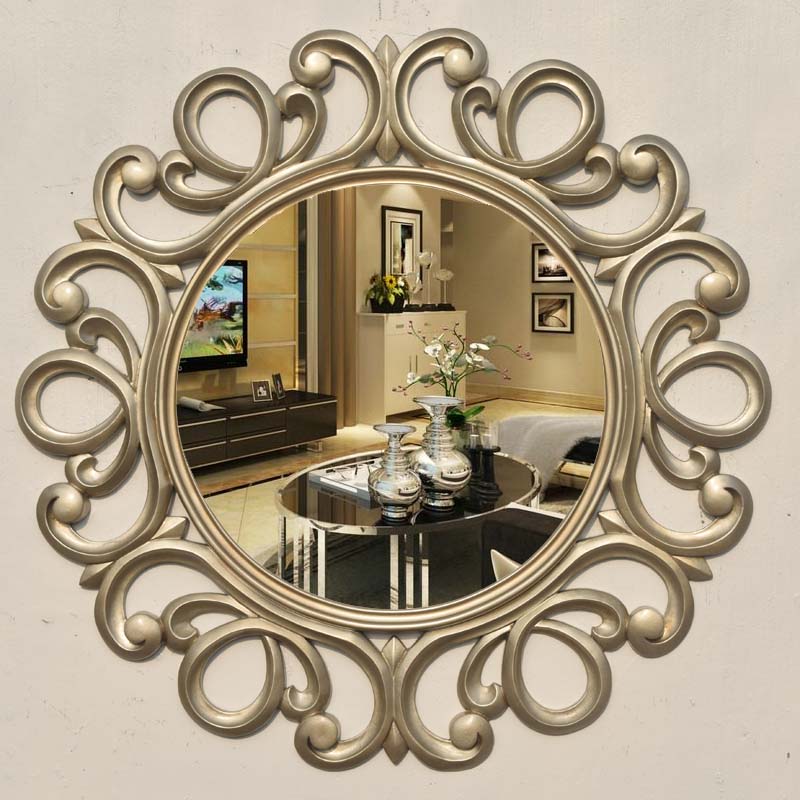 European style bathroom mirror Bathroom mirror Cosmetic mirror Round mirror Retro silver gold powder room mirror Full-length mirror mirror