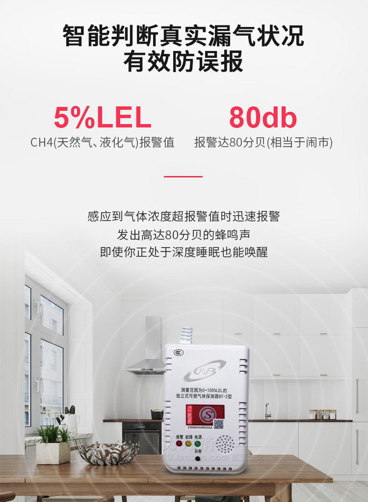National standard certification gas alarm gas gas household alarm with automatic shut-off solenoid valve