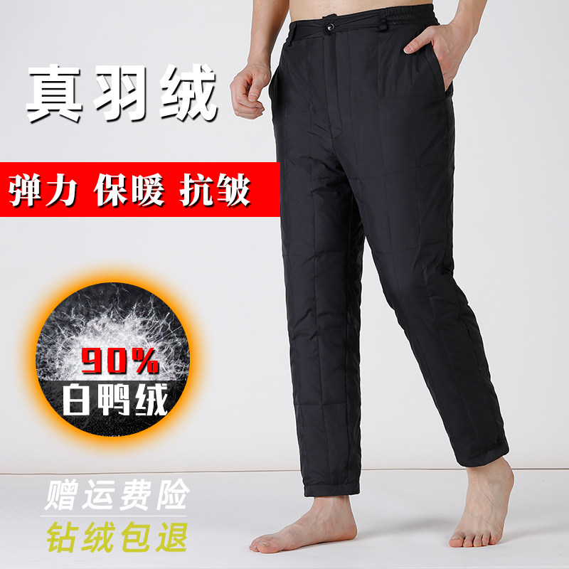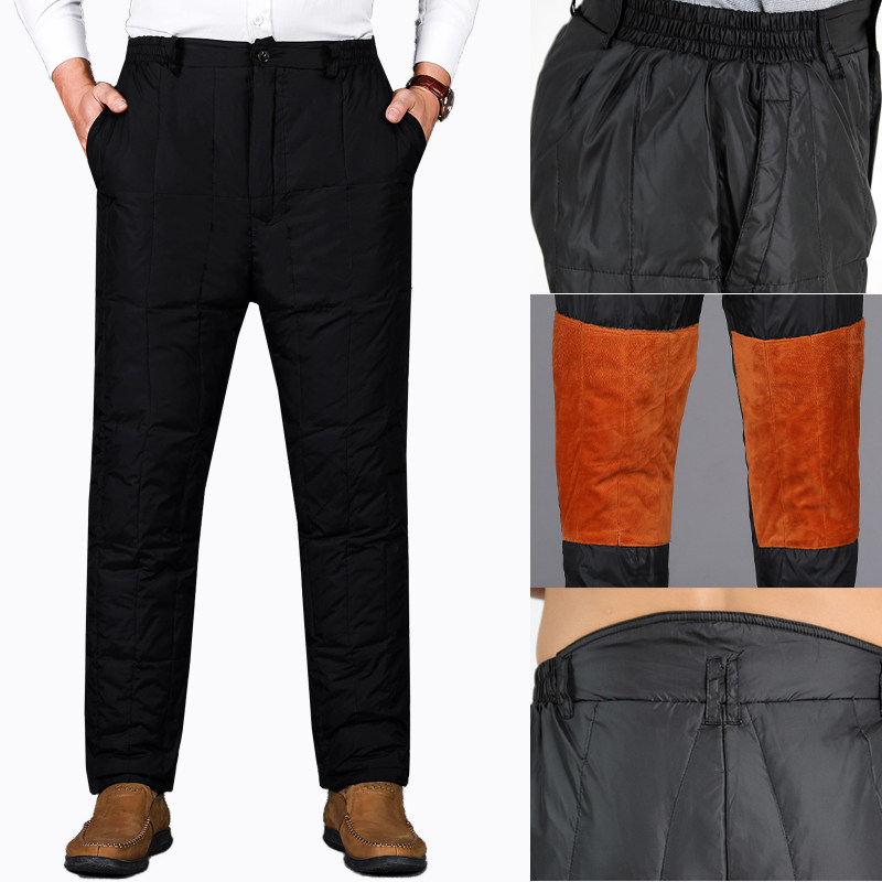 Middle-aged and elderly thickened deep gear plus fertilizer thickened down trousers windproof male and female outside wearing small feet down cotton pants male chill