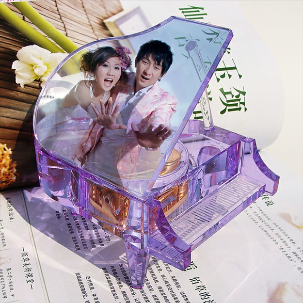 Crystal music box piano model rhyme movement music box can do photo lettering birthday gift
