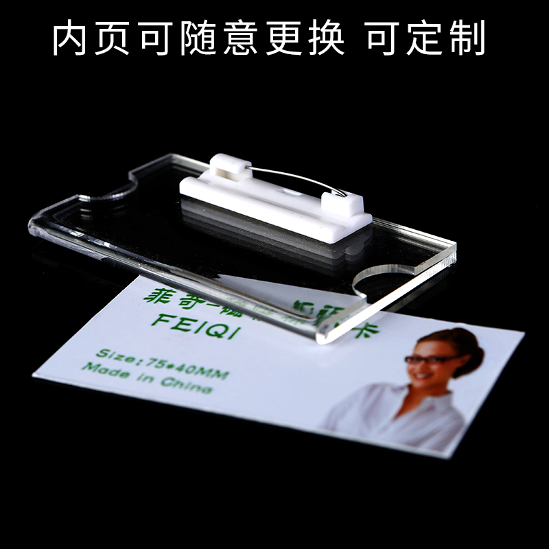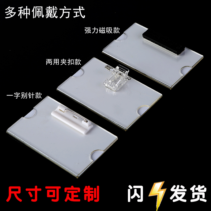 Acrylic badge Transparent badge pin work card replacement insert paper last name number plate badge clip staff badge pin Plexiglass badge clip magnet Student ID card custom