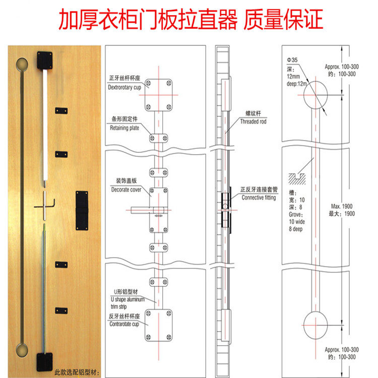 Wardrobe cabinet door straightener furniture sliding door integral cabinet door panel straightening rod to prevent door panel deformation door panel straightener