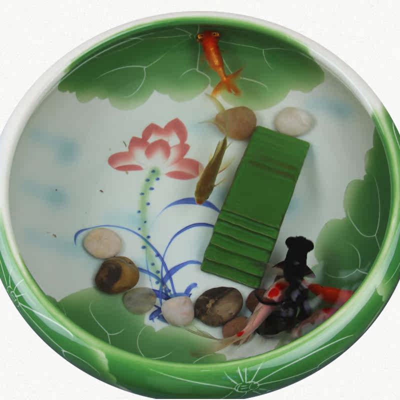 Buy one get 4 Jingdezhen ceramic fish turtle jar pen wash bowl lotus aquarium home decoration ornaments