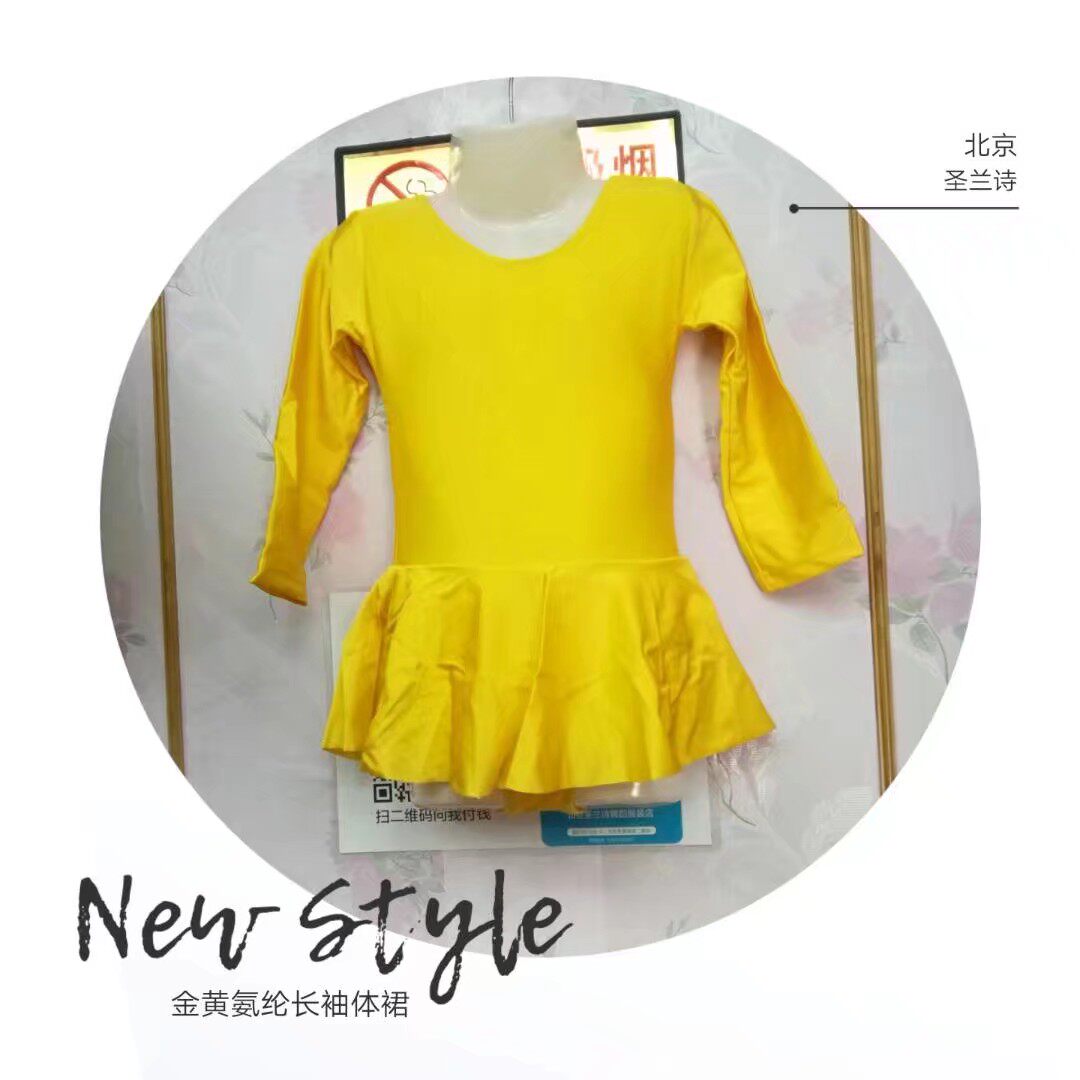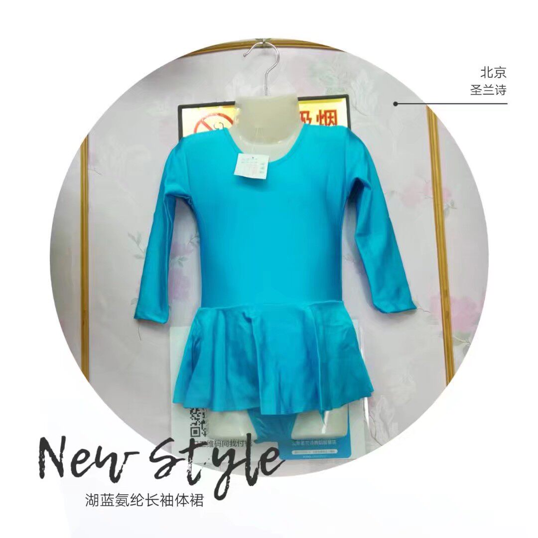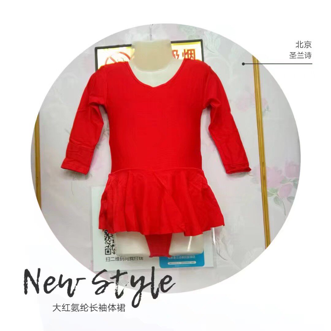 Holy Land Children's Gymnastics Dance Dress Ballet Connection Dress with pure color long - sleeved Latin Dance Costume
