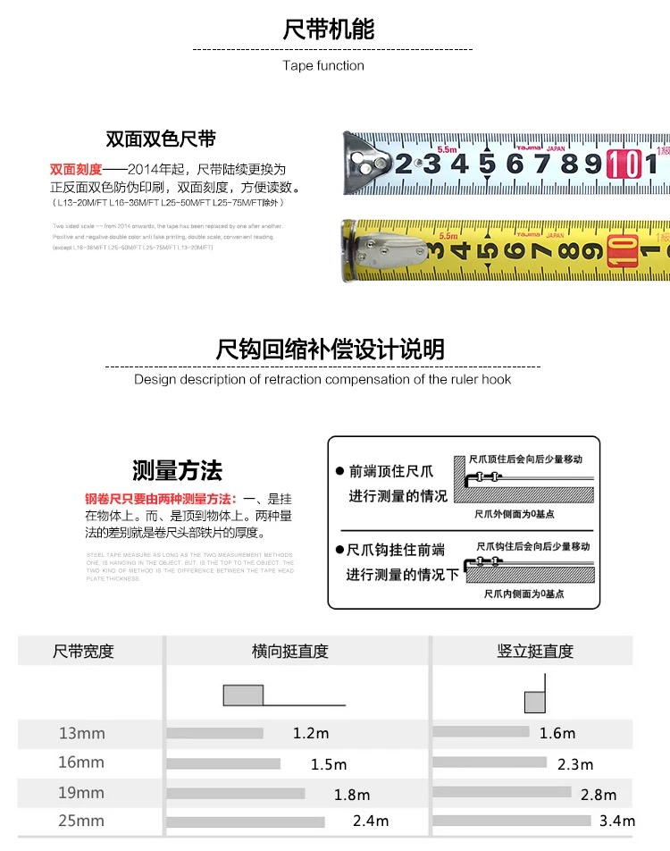 Japan's Tajima brand tape measure imported high-precision pull ruler metric inch 3 6 meters 5 meters 2 0 meters 7 5 meters 3 5 meters