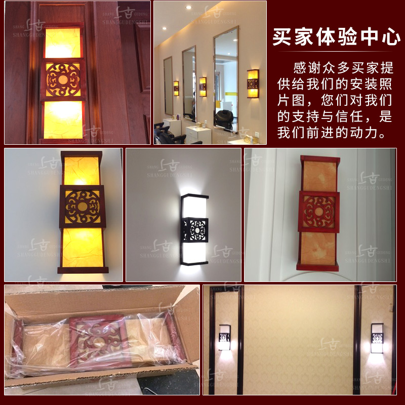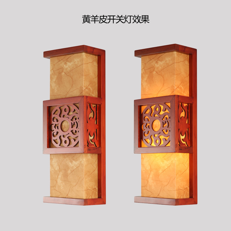 Ancient solid wood Chinese wall lamp bedside lamp retro wall lamp living room bedroom aisle corridor antique sheepskin lamp wall lamp