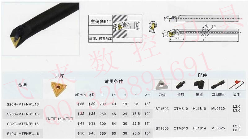 91 degrees CNC bore tool S20R-MTFNR16 S20R-MTFNL16 S20Q-MTFNR16